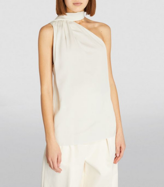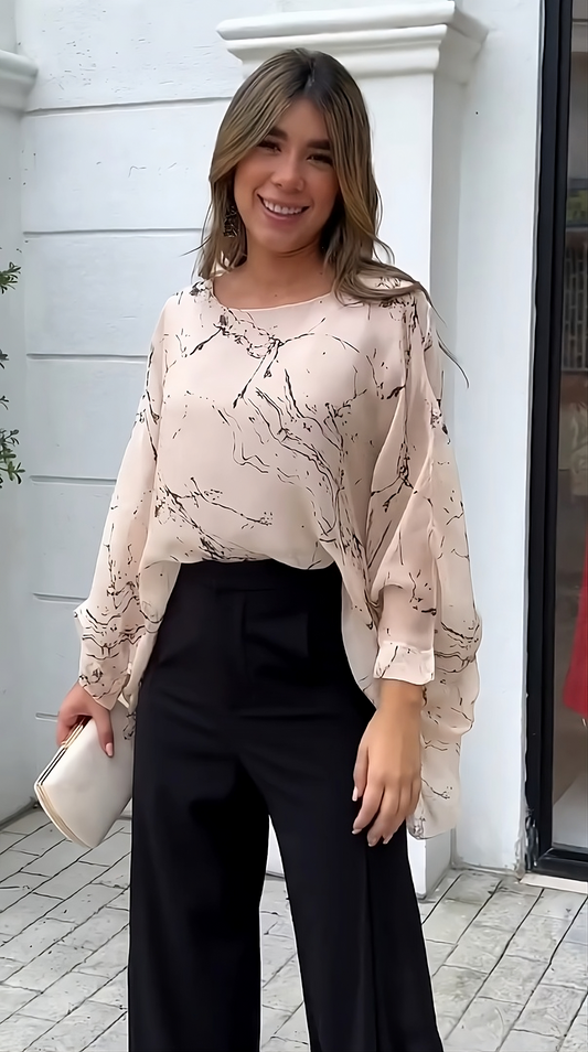 Tessa statement cream co-ord set with pleated fluid crepe bottom (QC5914)