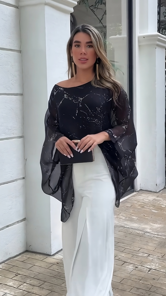 Tessa statement black co-ord set with pleated fluid crepe pants(QC5914)